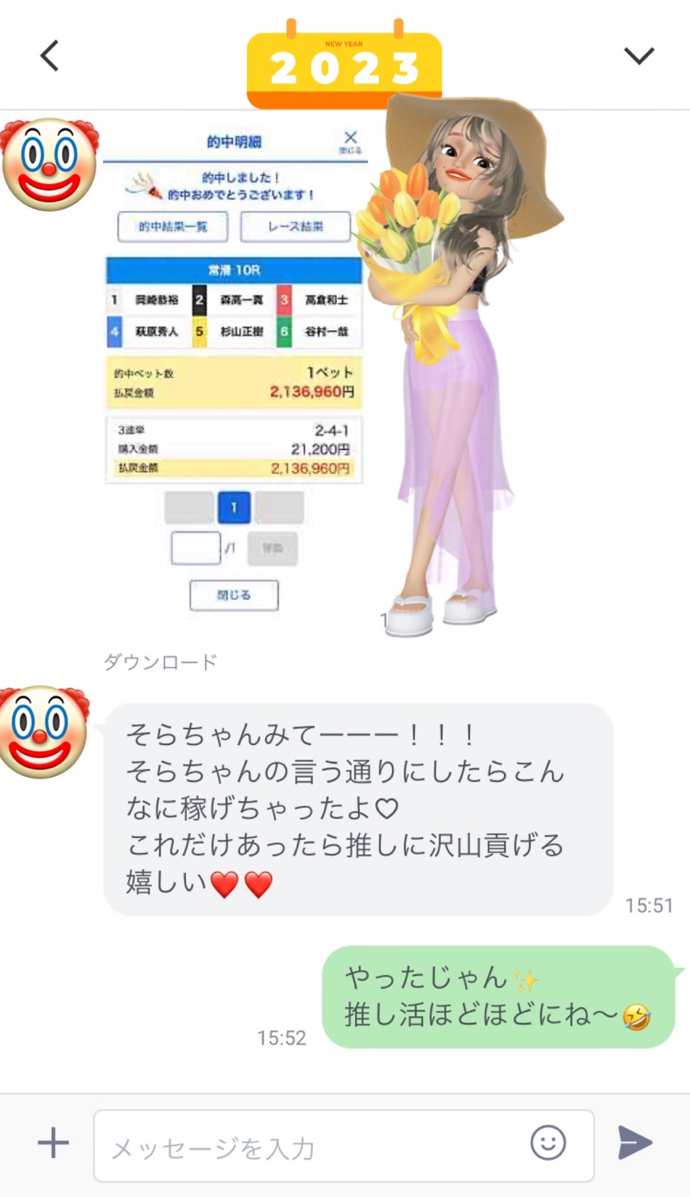 ちなみに私のLINE友達からはこんな感じでLINEもらってるよ♪